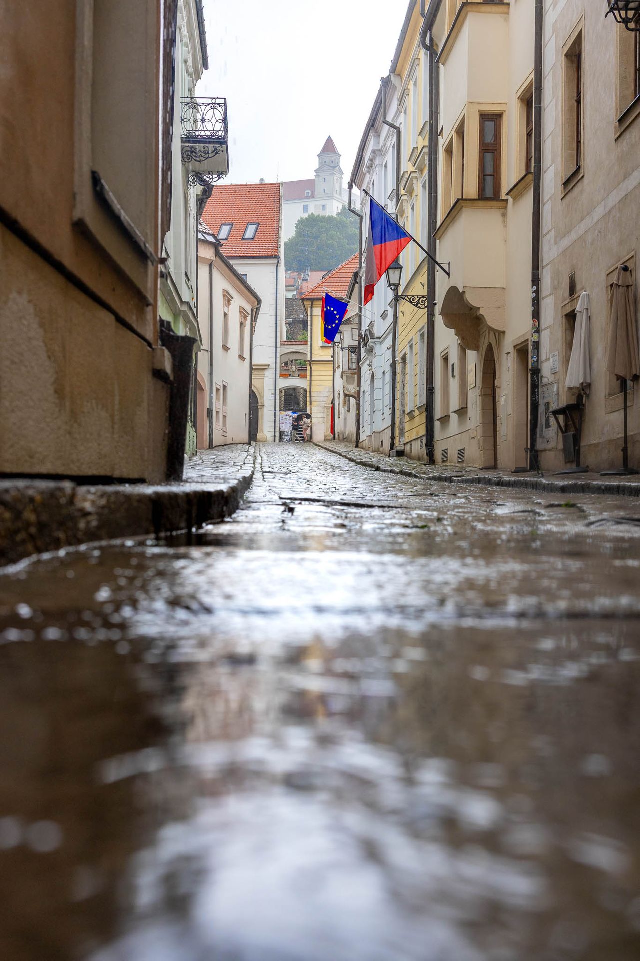 Mit Kamera und Regenschutz ausgestattet, spazierten wir durch die charmante Altstadt. Die nassen Gassen, spiegelnden Pflastersteine und bunten Hausfassaden boten eine ganz eigene, stimmungsvolle Kulisse für unsere Fotos. Es sind gerade solche unerwarteten Momente, die oft die schönsten Bilder entstehen lassen.